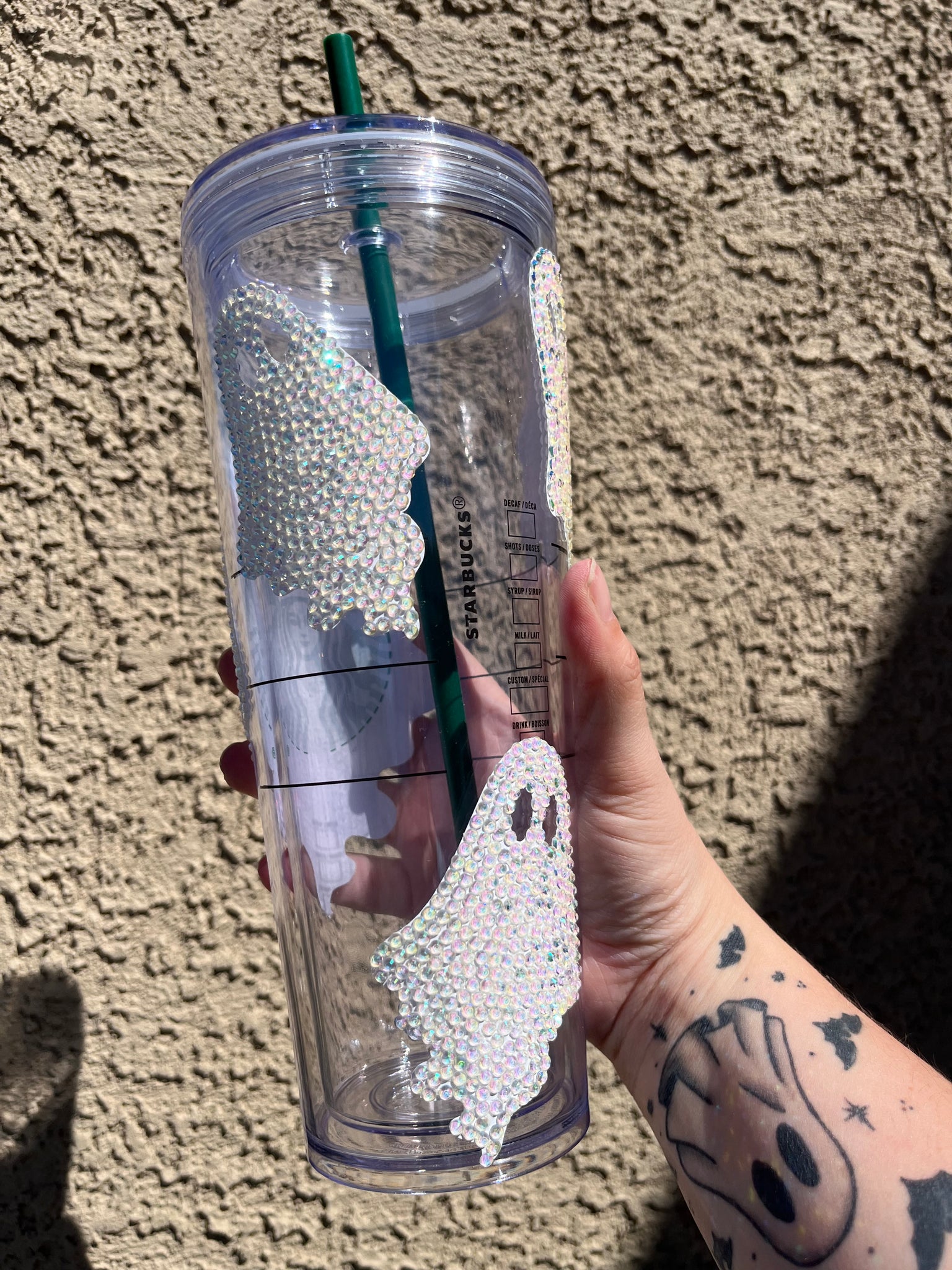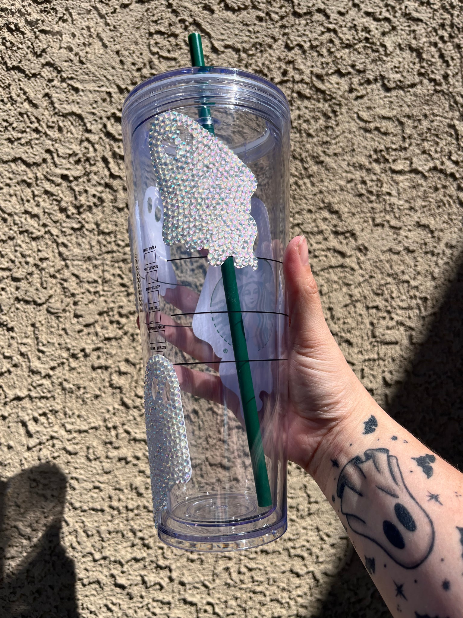 Have a hauntingly spooky cup with this bedazzled ghost cup.